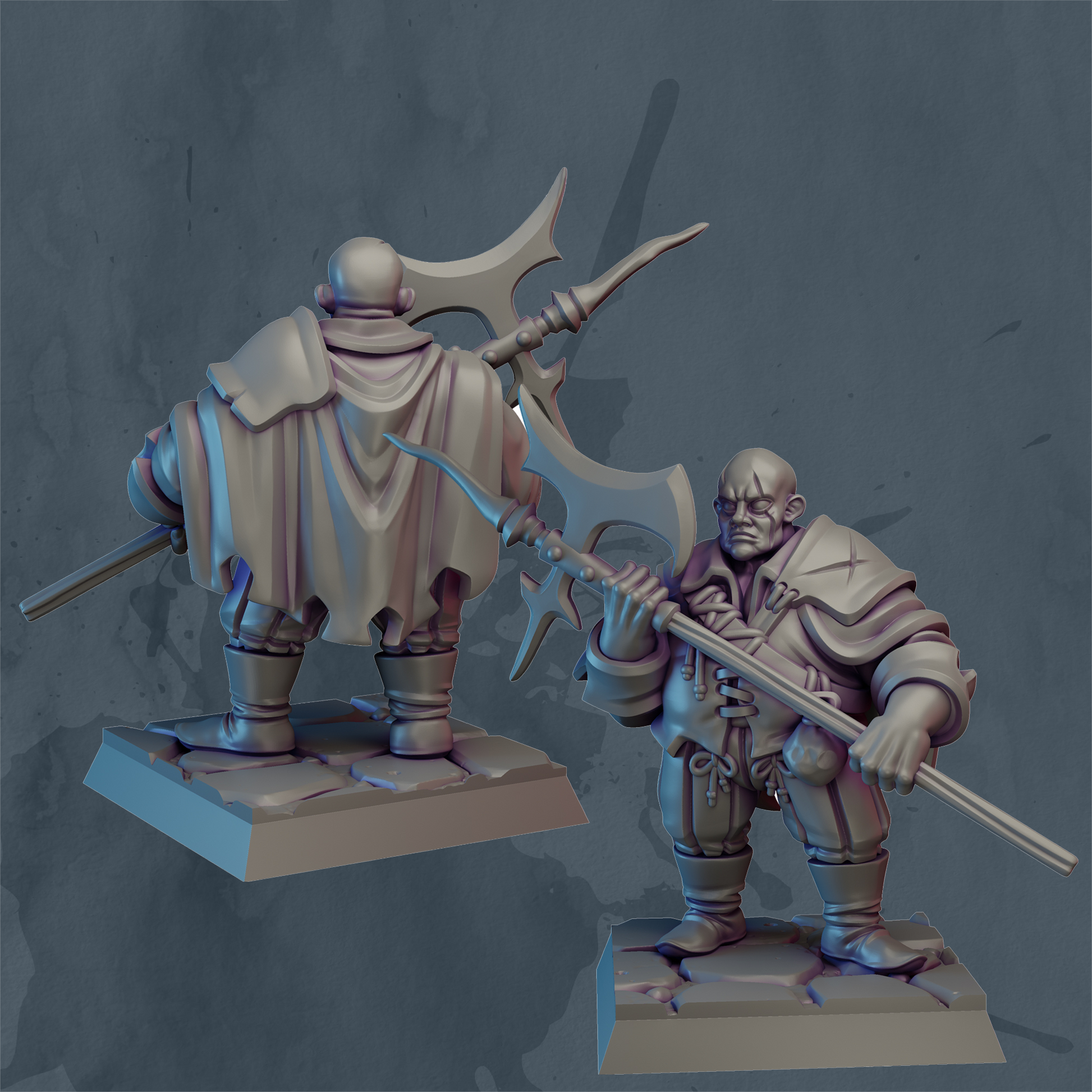 Figuren levereras omålad och i ett stycke med separat bottenplatta. Välj om du önskar kvadratisk eller rund bottenplatta. Figuren är utskriven på 3Dskrivare med en lagerprecision på 30 μm (0.03mm per lager). Figuren är färdig för att målas men kan behöva putsas från rester av utskriftsprocessen.